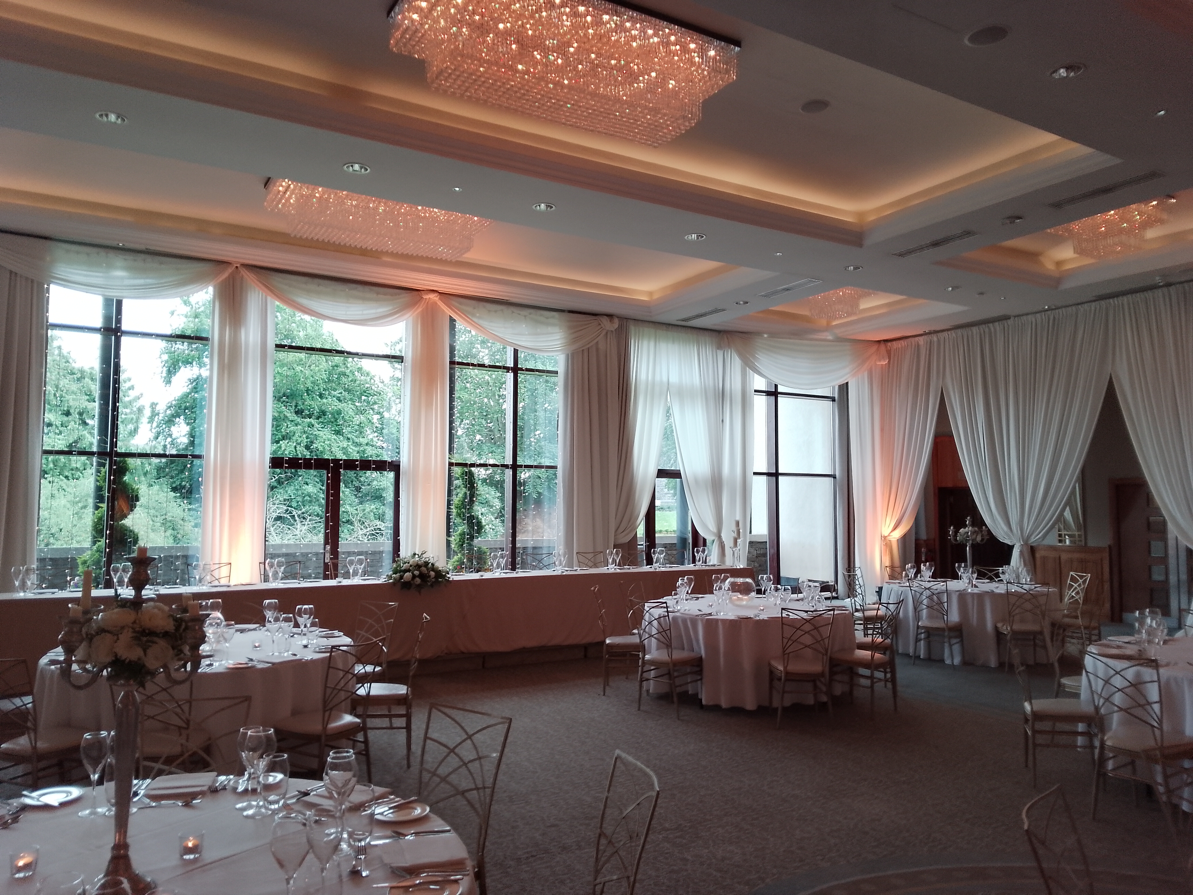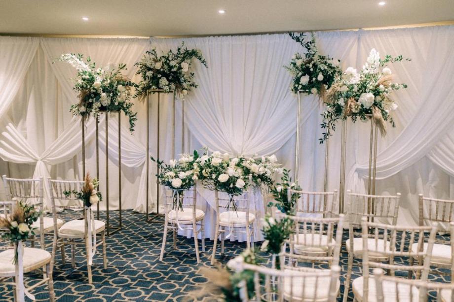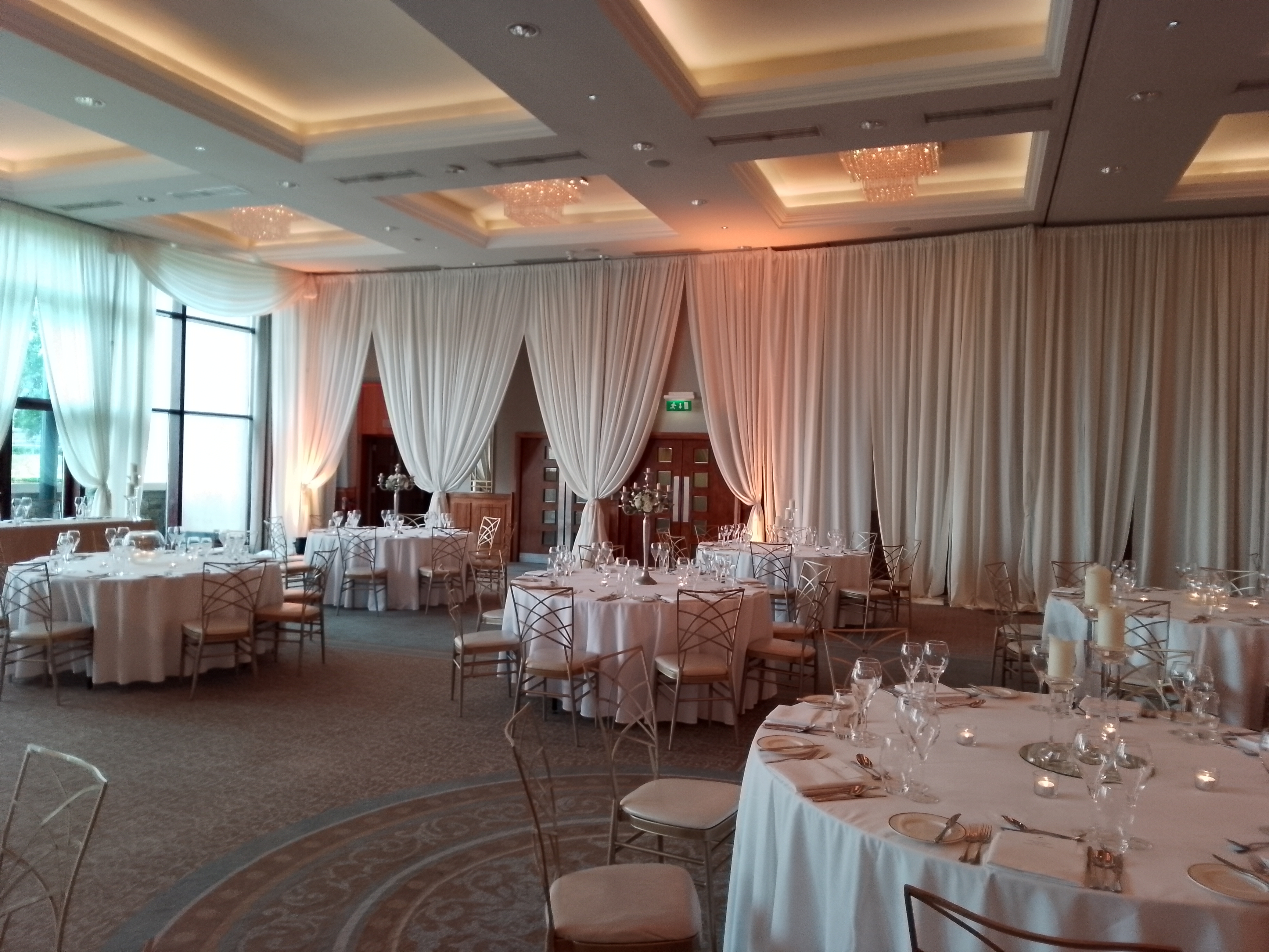 Full room draping (above) and civil ceremony back drop (below) at Portmarnock Hotel and Golf Links